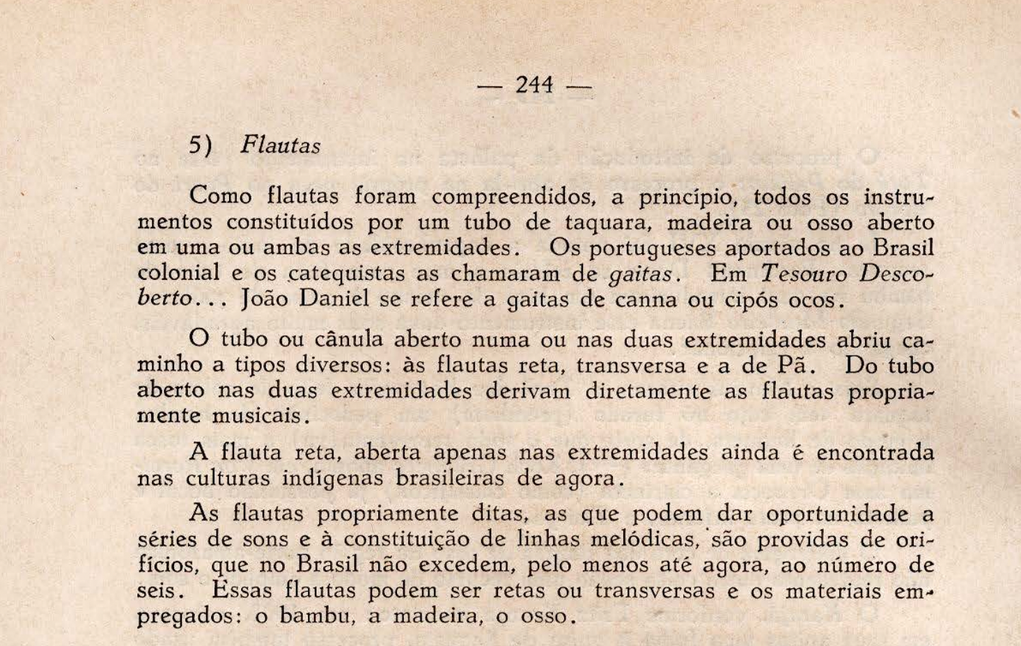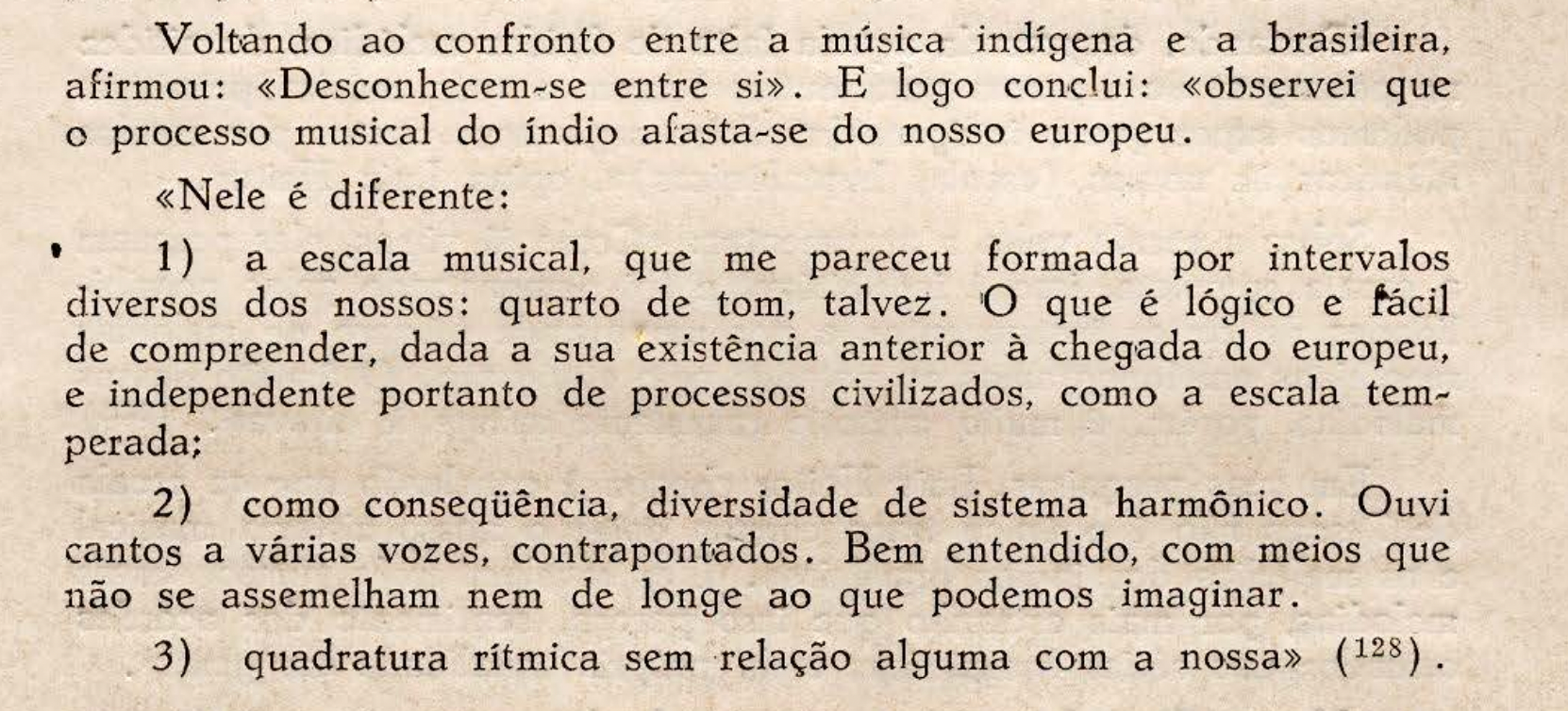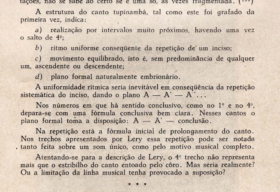 Luciano Gallet, a Brazilian musician that studies Indigenous music, demonstrates in his article Estudos do Folclore the similarities between the characteristics of Indigenous cultures in the 1930s and at the beginning of colonization. With regard to music specifically, he states that: “The same findings of similarity and unity of primitive character are confirmed in Indigenous musical themes of both the ancient and modern periods, recorded at the time of the earliest encounters.”