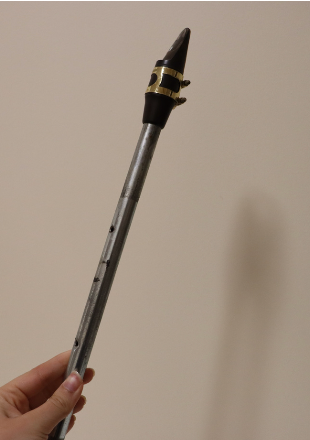 The first instrument, built from iron and equipped with a saxophone mouthpiece, offers a unique combination of metallic and melodic sonorities. The fusion of these elements results in an expressive timbre that challenges traditional expectations.
