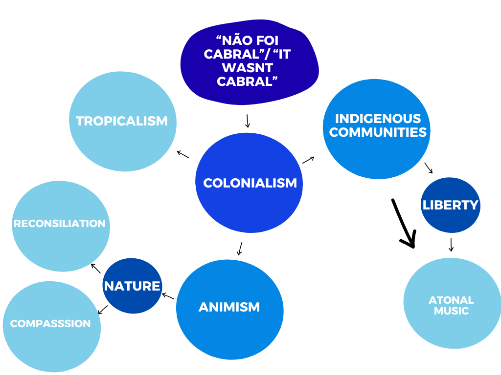 I also believe that, in developing this project, particularly during the pre-production phase, I managed to acquire a strong theoretical foundation regarding the theme “Não Foi Cabral”, and from that point on, I was able to connect certain concepts or artistic models with my installation.